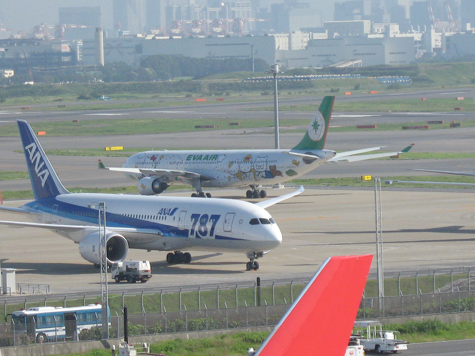 出国審査の前に、展望デッキに行って飛行機を眺めました。