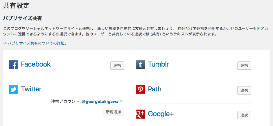 あとは、Twitterのアカウントを認証して、「記事投稿時にTwitterへ通知メッセージを同時投稿する 」にチェックを入れれば完了です。