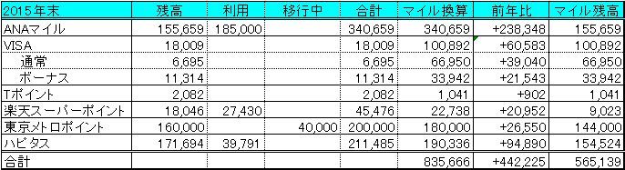 これもひとえにこのブログの運営をしていく中でマイレージ関連の情報にアンテナを張っていろいろな情報を得て、そして着実に実践してきたからだと思います。
