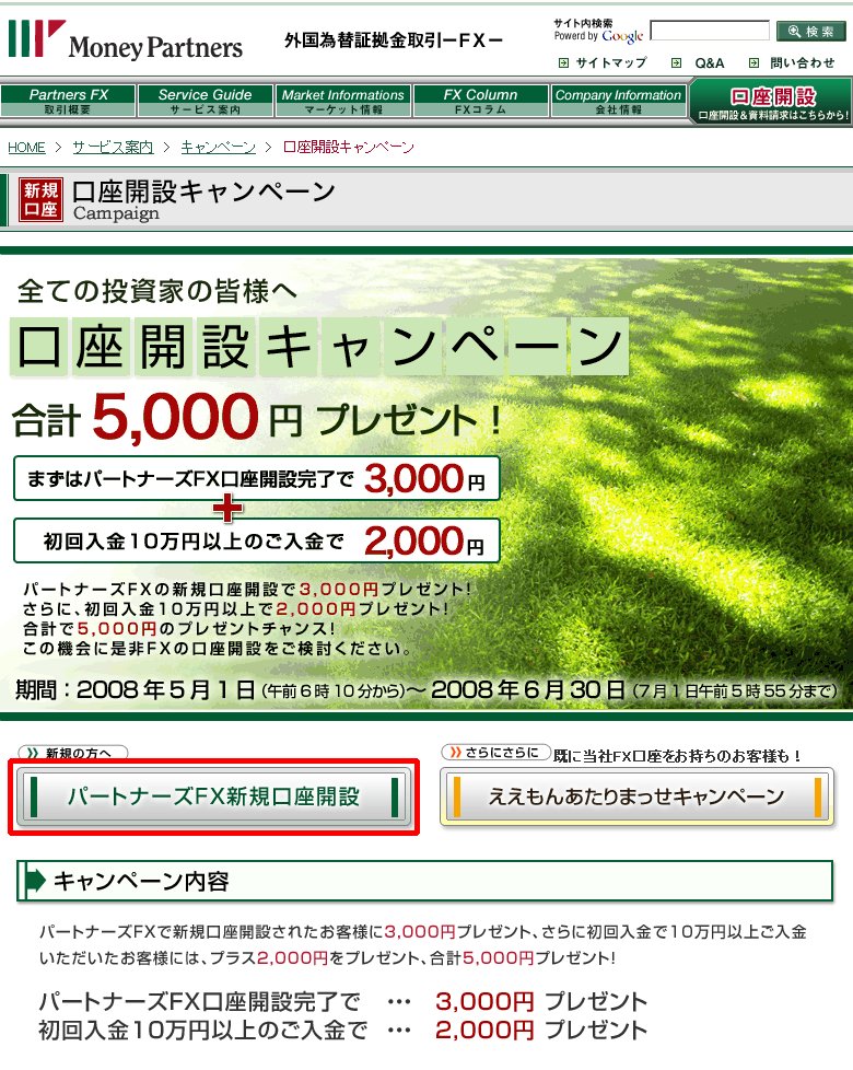 (申込手順と留意点)完全無料で5,000円がもらえる!パートナーズFXのキャンペーン