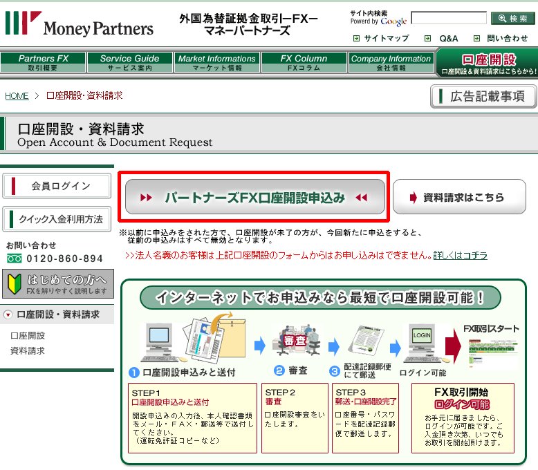 今回は、先日の記事で紹介したパートナーズFXのキャンペーンについて、管理人も申し込みをしてみましたので、申し込みの流れと、申し込みにあたって気がついた点を紹介したいと思います。
