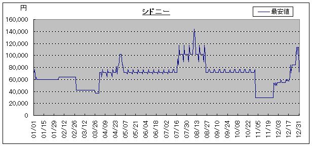 格安航空券の底値推移(2009年1月調査・シドニー)