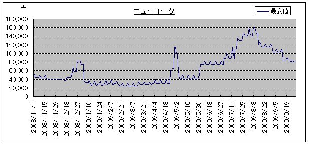 格安航空券の底値推移(2009年3月調査・ニューヨーク)