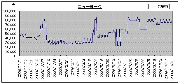 格安航空券の底値推移(2009年6月調査・ニューヨーク)
