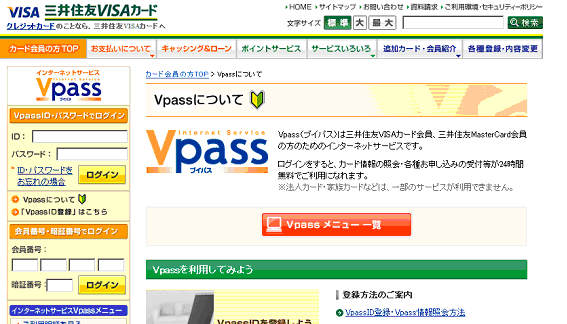・Vpass(ブイパス)について:クレジットカードの三井住友VISAカード