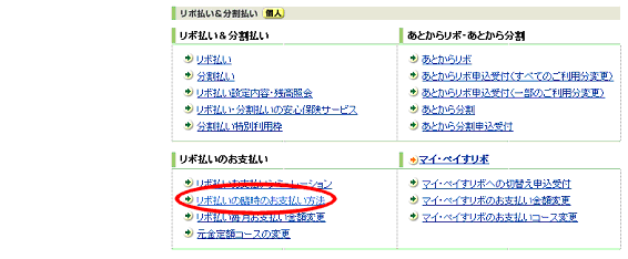 「リボ払いの臨時のお支払い方法」というリンクがありますので、こちらをクリックします。