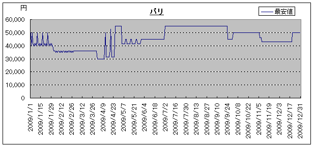 ・格安航空券の底値推移(2009年11月調査・パリ)